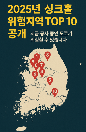 2025년 싱크홀 위험지역 TOP 10 공개! 지금 공사 중인 도로가 위험할 수 있습니다
