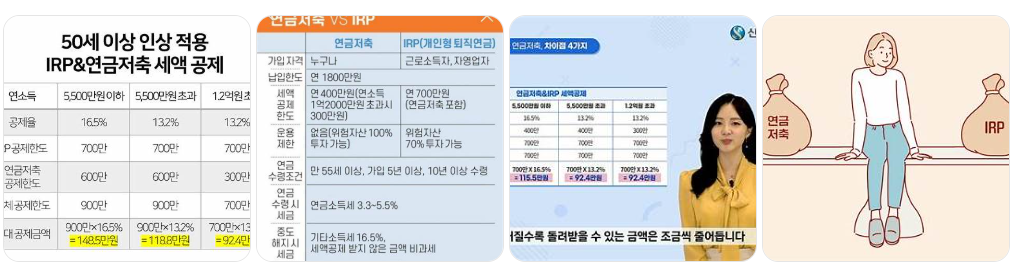 ✔ 절세형: 연금저축펀드 + 연금저축보험 + IRP (세액공제 극대화)
