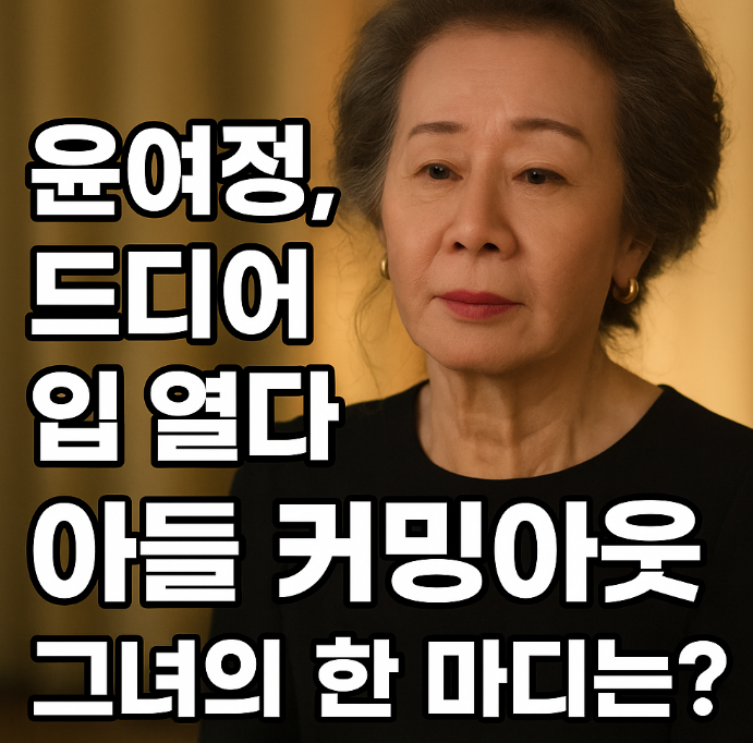 최근 한 해외 커뮤니티와 인터뷰를 통해 윤여정의 아들이 **자신의 성적 지향성을 공개하며 커밍아웃을 선언**해 화제가 되었습니다. 그는 미국에 거주 중이며 예술계에서 활동 중인 것으로 알려졌고, 커밍아웃은 자유로운 문화 속에서 자연스럽게 이뤄졌다고 합니다. 이후 윤여정이라는 이름은 국내외 포털사이트에서 동시에 실시간 검색어 상위권을 차지하며, 많은 이들의 주목을 받았습니다.