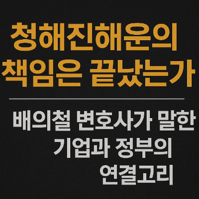 배의철 변호사는 공공 안전에서 기업과 정부의 관계는 분리될 수 없다고 말한다. 특히 해운업처럼 정부의 허가와 감시가 절대적인 분야에서는 더욱 그러하다. 청해진해운은 구조상 독립된 민간 기업이 아니라, 정책과 제도, 감시가 결합된 공적 관리의 대상이었다. 그는 “세월호를 청해진해운의 사건으로 축소하는 순간, 구조는 다시 반복된다. 기업의 탐욕은 막기 어렵지만, 그 탐욕을 감시하고 견제하지 못한 국가는 더 큰 책임을 져야 한다”고 말한다.