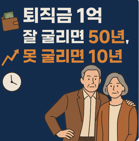 많은 직장인이 은퇴 시 받는 퇴직금은 평균 1억 원 내외입니다. 이 금액은 처음에는 커 보일 수 있지만, 실제로 은퇴 후 50년이라는 긴 시간을 고려하면 매우 부족한 금액입니다. 평균 수명이 90세를 넘어서고 있는 지금, 50대 중반에 은퇴한다면 무려 40년에서 50년 가까운 기간 동안 이 자산을 어떻게 운용하느냐에 따라 삶의 질이 결정됩니다. 은퇴 후 50년 동안 매월 지출되는 생활비, 의료비, 간병비 등을 고려할 때, 단순한 저축이나 예금만으로는 부족합니다. 퇴직금은 단지 한 번 받는 돈이 아닌, 은퇴 후 50년을 살아낼 기반이 되는 자산입니다. 이 돈을 제대로 굴리지 못하면, 10년도 가지 못하고 바닥날 수 있습니다.